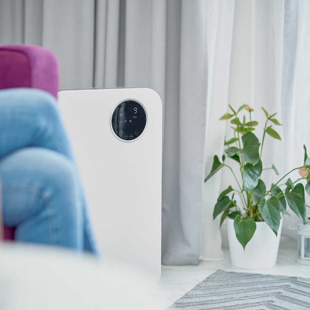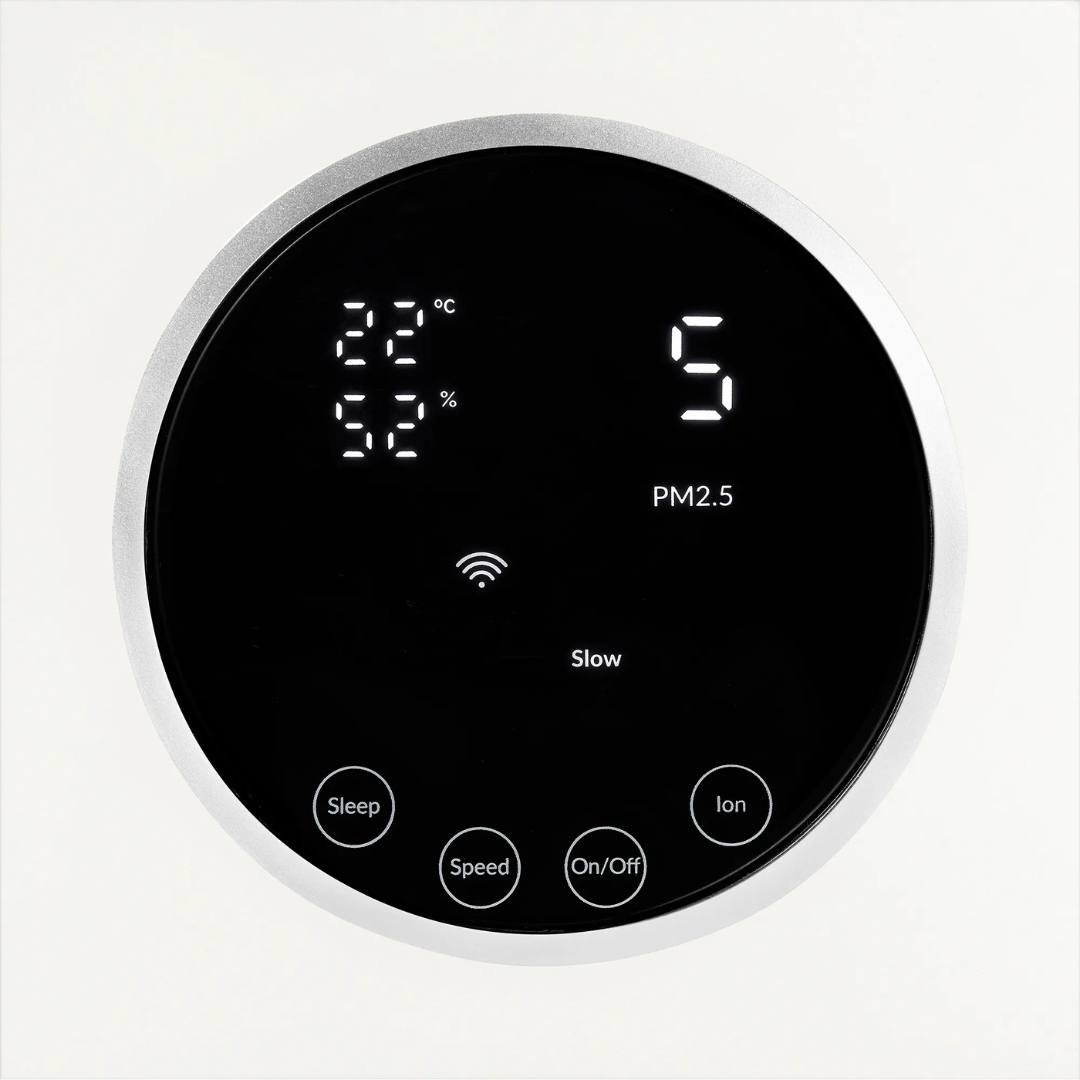 Wysokiej klasy filtr HEPA H13 zatrzymuje nawet 99,97% zanieczyszczeń, a superczuły laserowy czujnik PM2.5 na bieżąco kontroluje jakość powietrza.