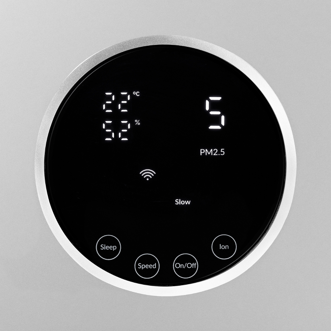 Wysokiej klasy filtr HEPA H13 zatrzymuje nawet 99,97% zanieczyszczeń, a superczuły laserowy czujnik PM2.5 na bieżąco kontroluje jakość powietrza.