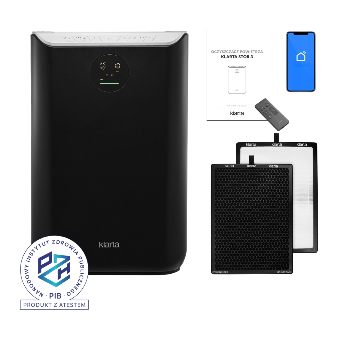 Tam szkodliwe substancje, jak np. pyły smogowe, roztocza kurzu domowego, pyłki traw i drzew, zarodniki pleśni, tlenki metali, dym papierosowy i inne zostają skutecznie zatrzymane na 3 filtrach. Klarta Stor 3 wyłapuje i unieszkodliwia potencjalne niebezpieczne mikrocząsteczki o wielkości nawet 0,001 um.