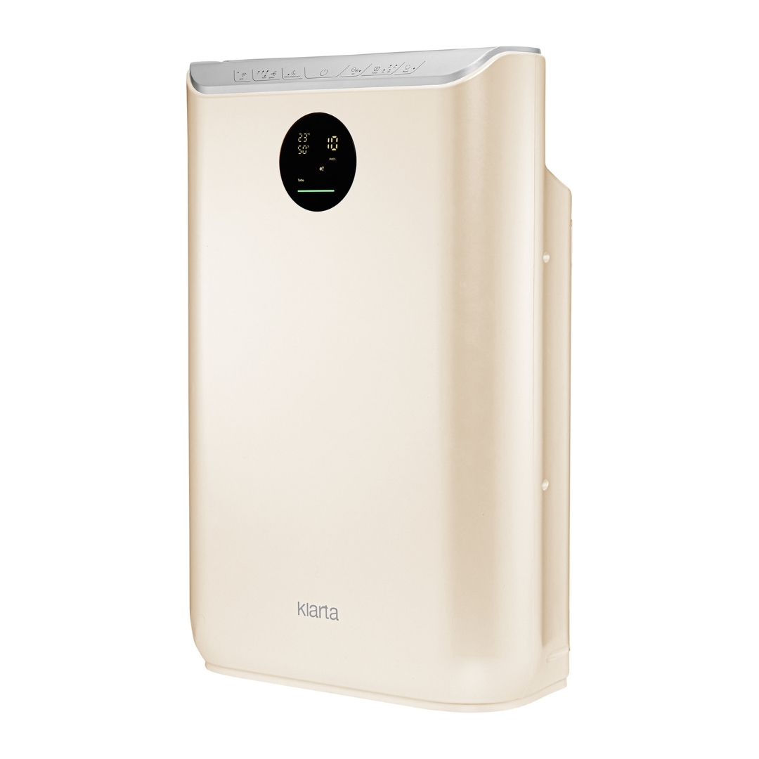 Ulepszona, 3 generacja oczyszczacza Klarta Stor w czasie rzeczywistym skanuje powietrze, natychmiast informując o poziomie PM2,5, temperatury i wilgotności. Dzięki wydajnemu, energooszczędnemu silnikowi DC, zaciąga znaczne masy powietrza do oczyszczacza.