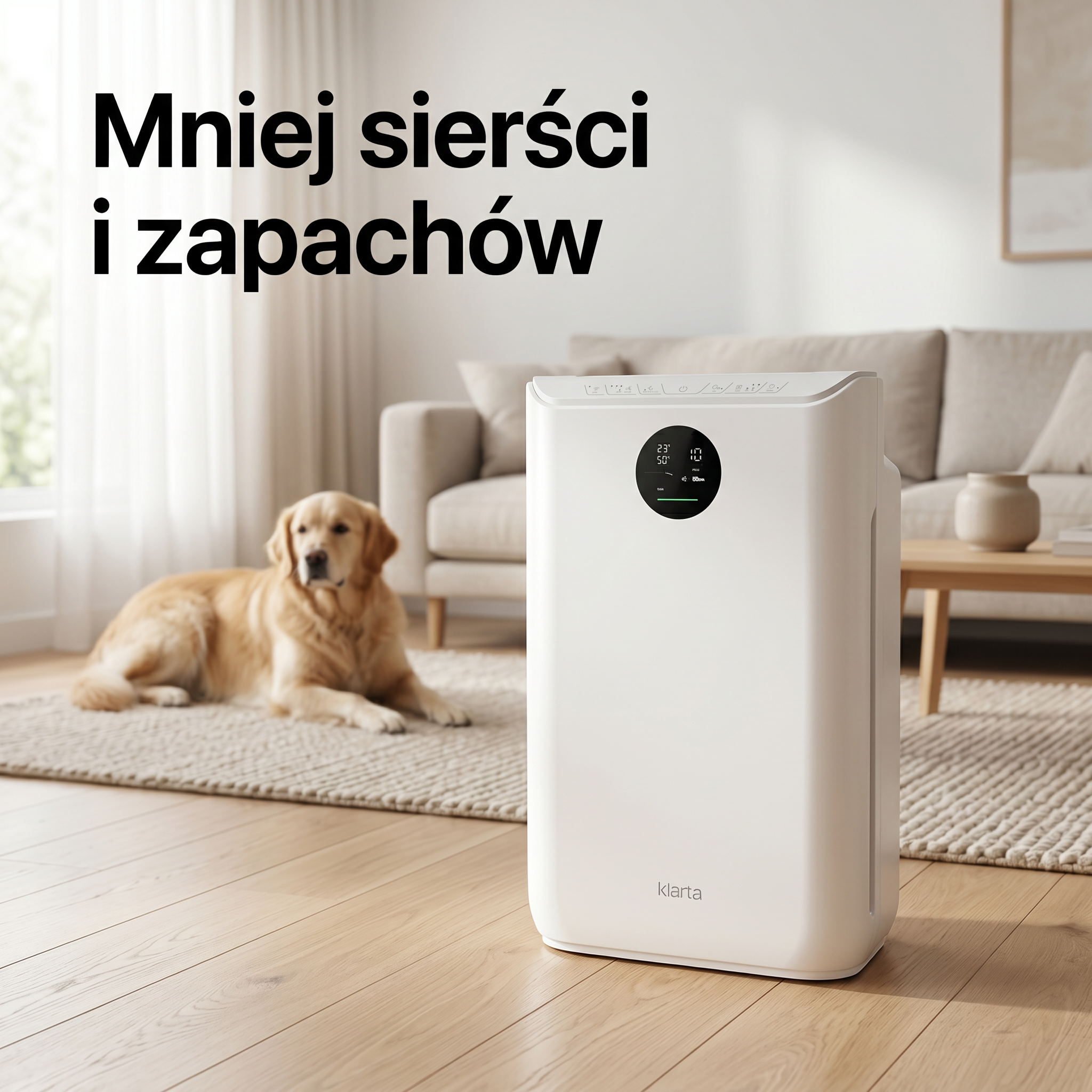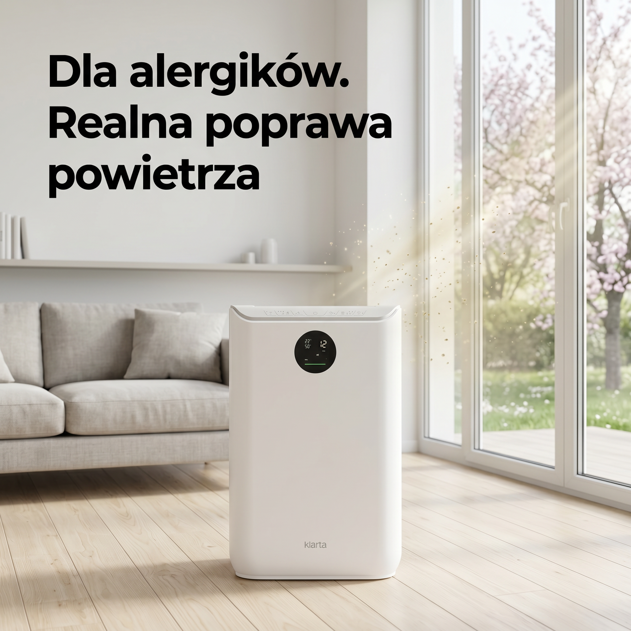 Ulepszona, 3 generacja oczyszczacza Klarta Stor w czasie rzeczywistym skanuje powietrze, natychmiast informując o poziomie PM2,5, temperatury i wilgotności. Dzięki wydajnemu, energooszczędnemu silnikowi DC, zaciąga znaczne masy powietrza do oczyszczacza.