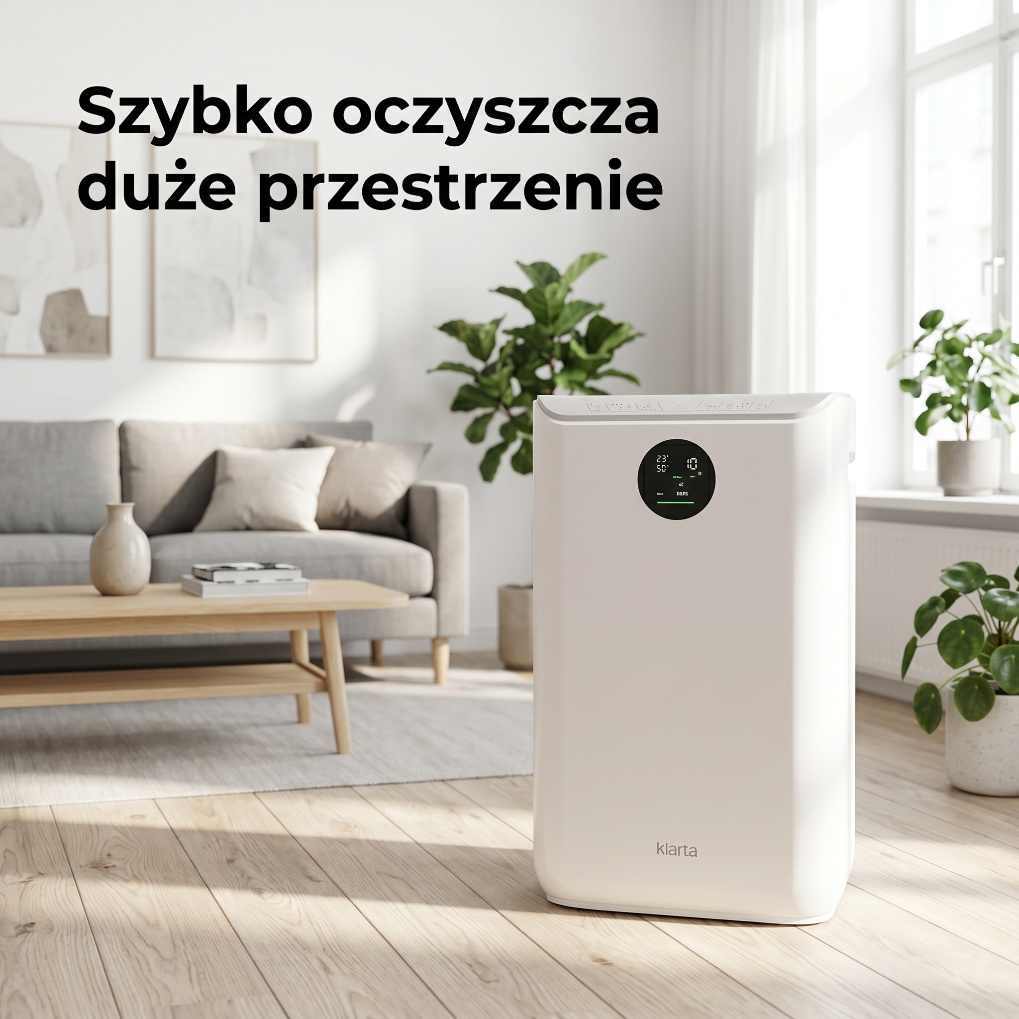 Oczyszczacz powietrza Klarta Stor 3 wyróżnia się olbrzymią wydajnością, potrafiąc jednocześnie być bardzo energooszczędnym urządzeniem.